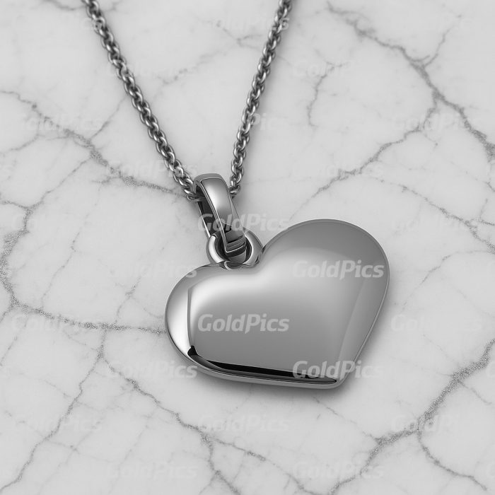 Flat Heart Pendant Necklace File #004 White Gold